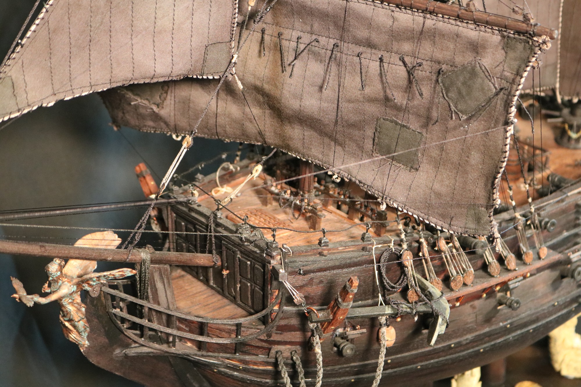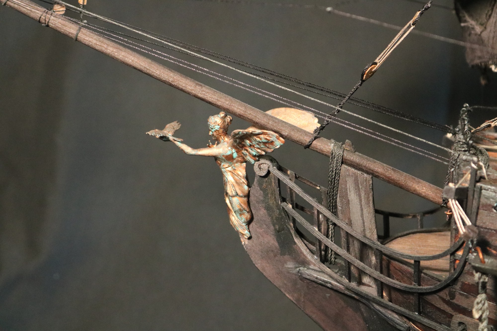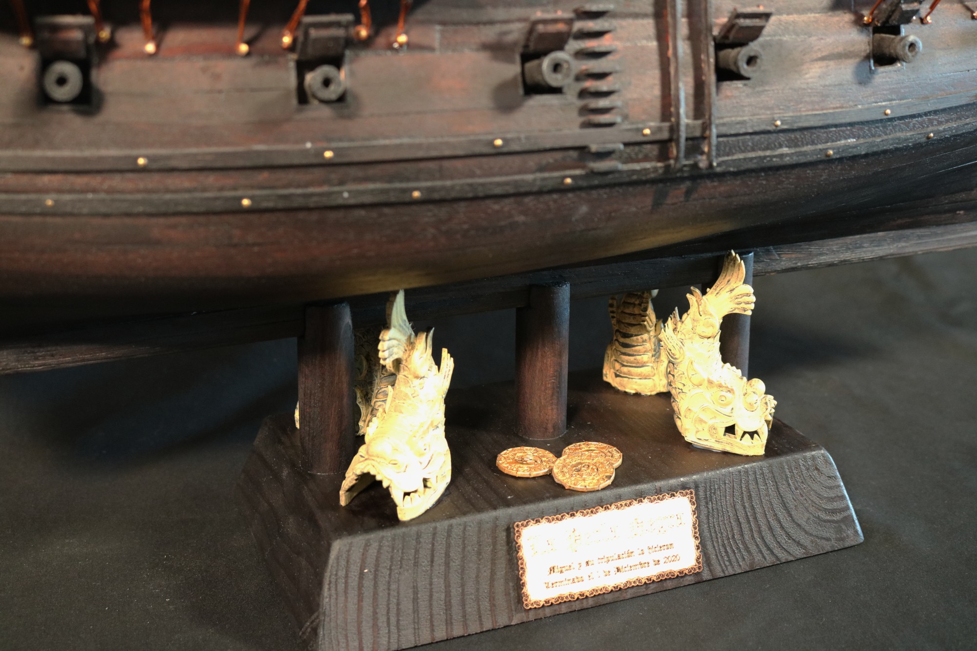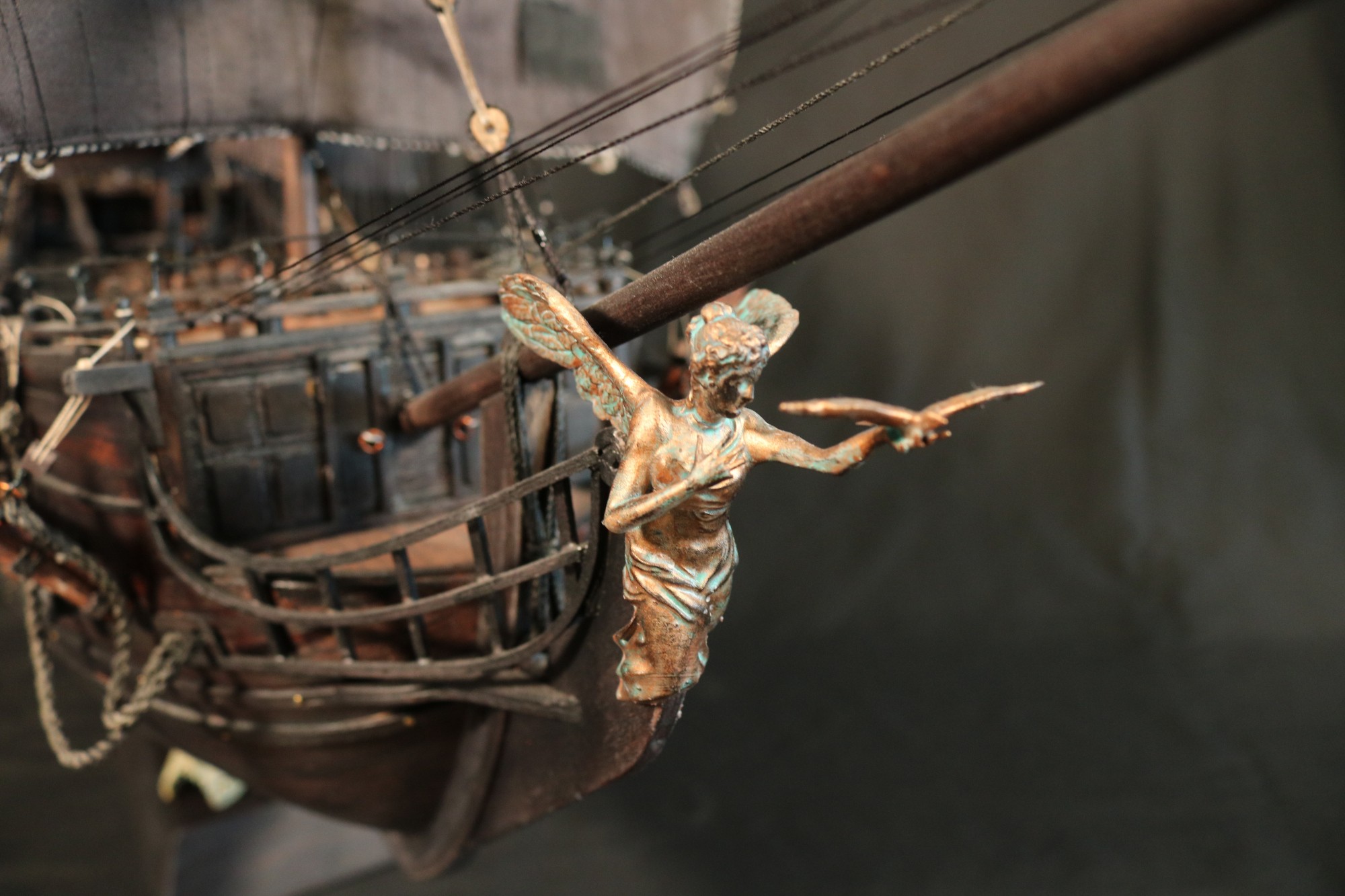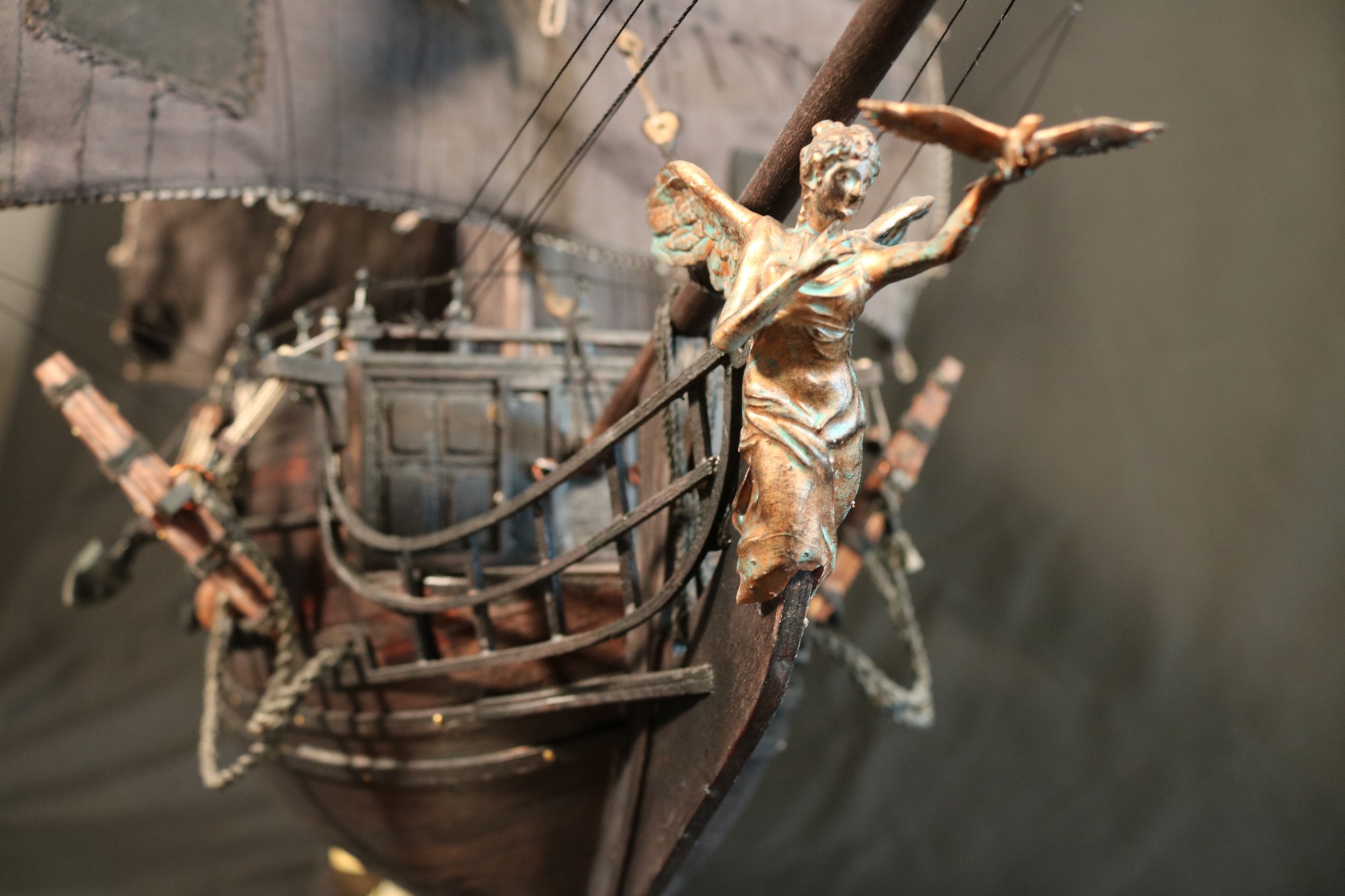 Aqui el barco empieza ya tomar el carácter que tiene. La figura del mascaron de proa de la Perla Negra es una mujer con una paloma en la mano mientras que con la otra se cubre ella. Sinceramente, había pensado hacerla en madera pero es una talla muy compleja asi que aqui si decidi darle uso a la impresora 3D de resina y sacar la figura con impresora 3D. En Youtube tenéis un tutorial muy guapo donde te explico como he creado el mascaron, como lo hemos imprimido, limpiado, curado, pintado y envejecido.