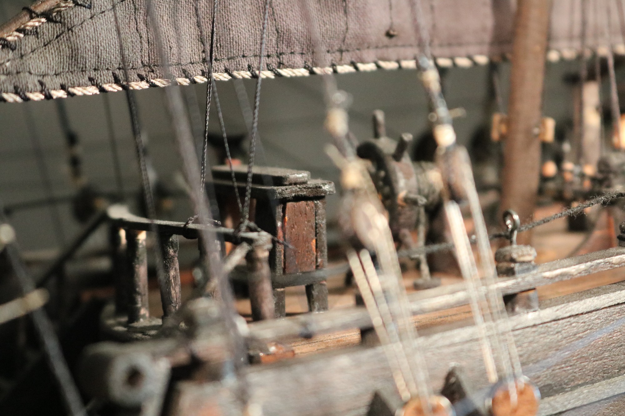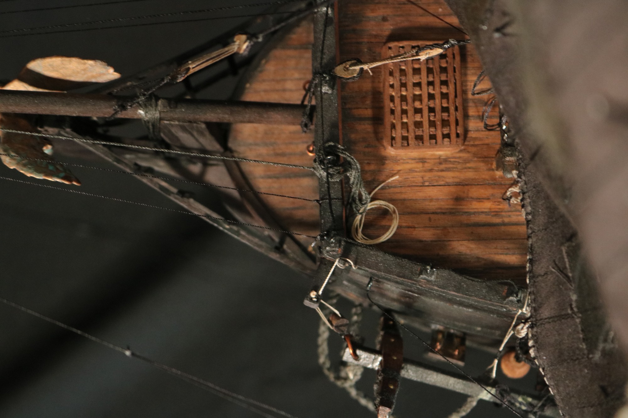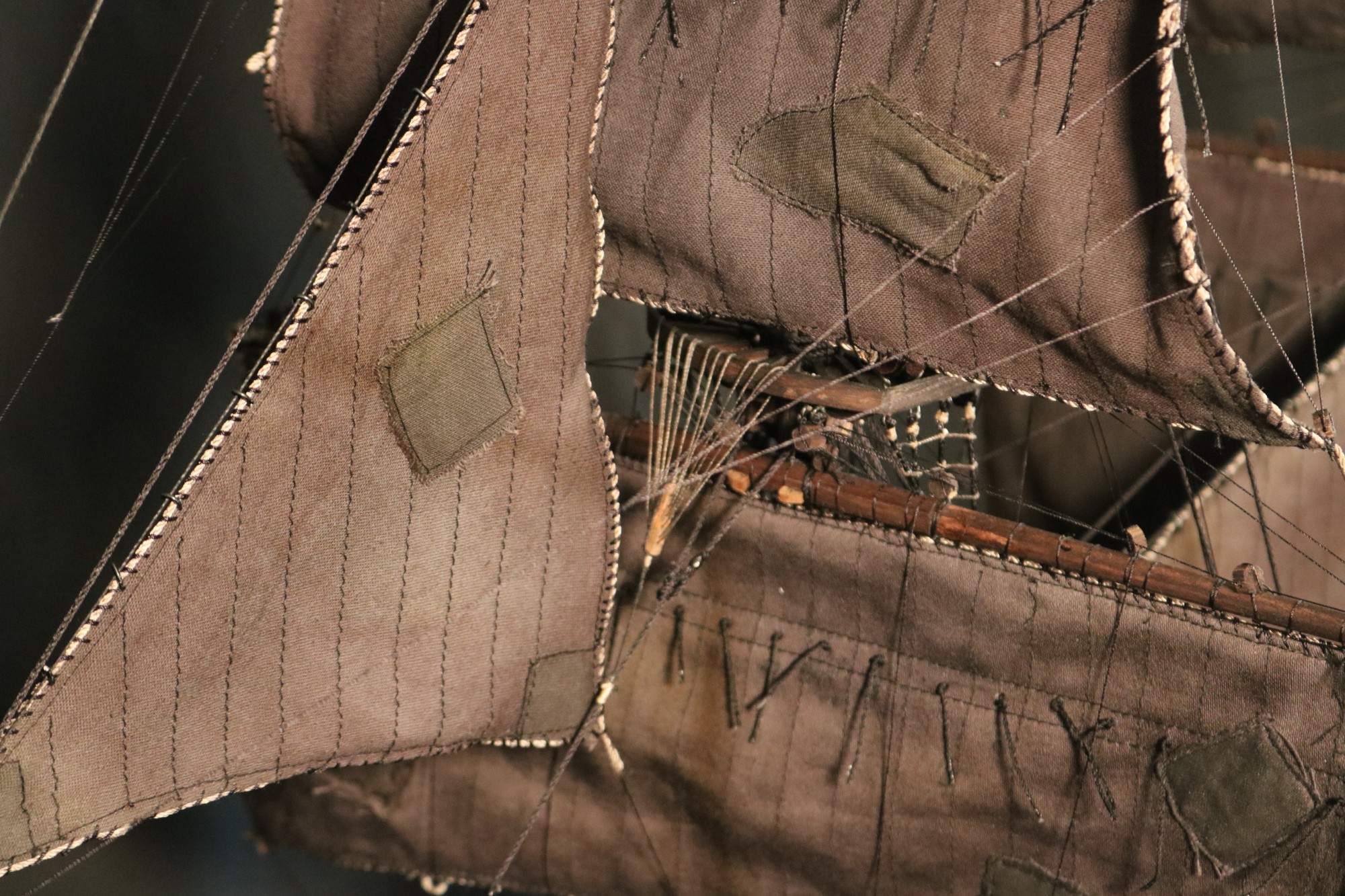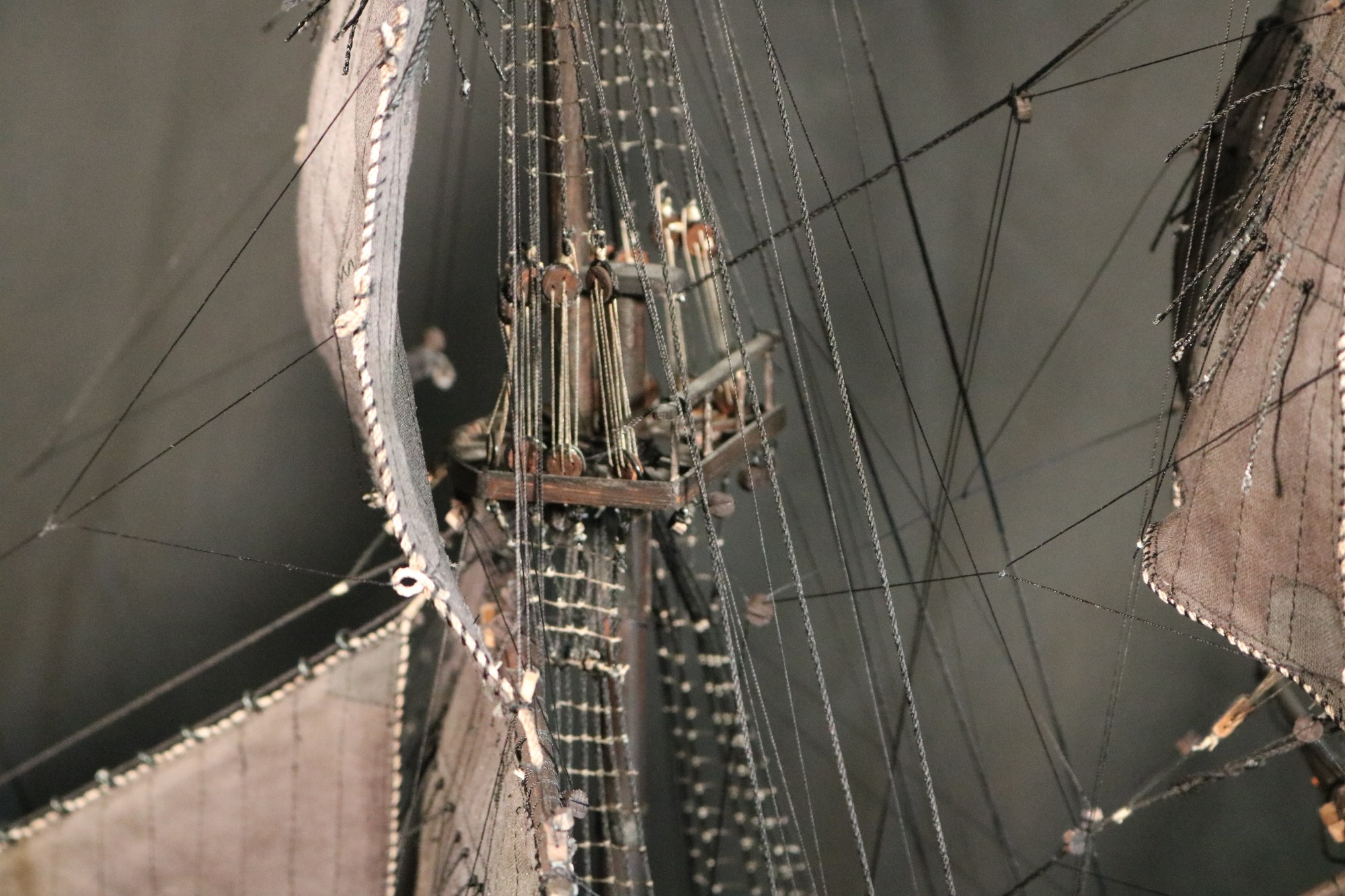 Una vez fijadas las vergas en su posición, he puesto todos los cabos de las velas y los he fijado en su sitio con el mismo método. Una vez puesto todo le he aplicado cola diluida sobre las velas y usando un ventilador y un secador he dejado a las velas hinchadas literalmente por el viento durante horas hasta que se han secado. Y el resultado es espectacular la verdad. Para el siguiente ya tengo una idea de cómo lo voy a hacer. Y va a ser todavía mejor.